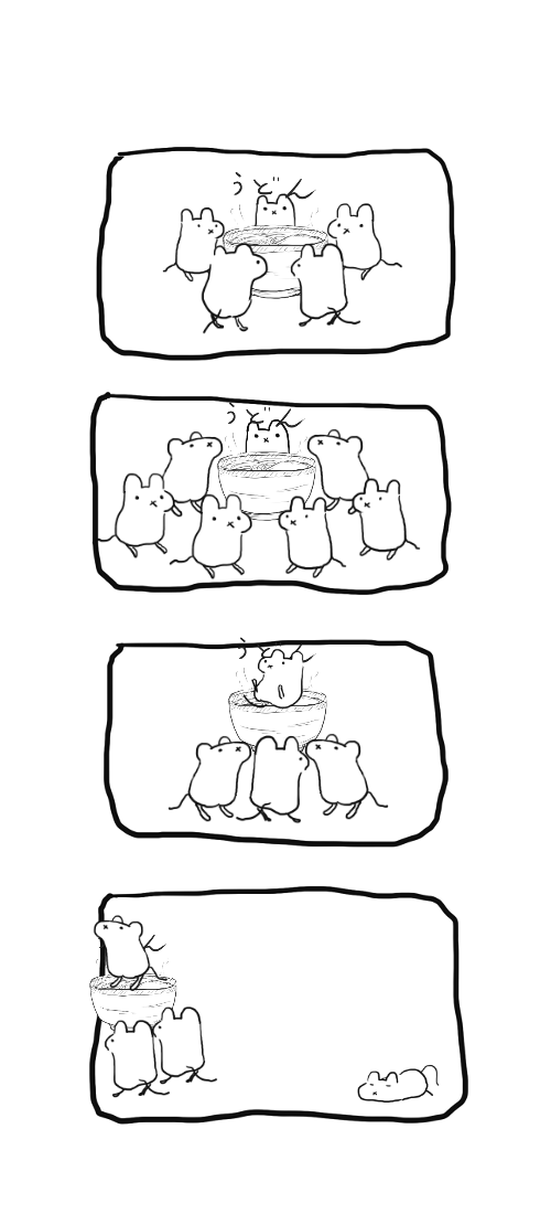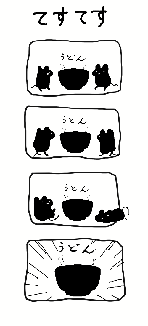 2 足歩行の不思議な生物すたちゅー(© @dangoinette)。あなたの頭の中のすたちゅーさんを 4 コマまんがにしてみましょう。絵心もペンタブもいりません。すたんぷを押すだけの簡単なお仕事です。